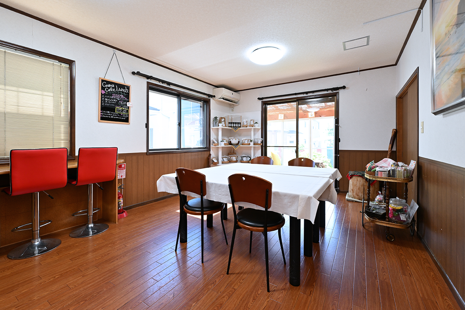 作業場に併設されたCaféすまいるで、さまざまな作業を行います。