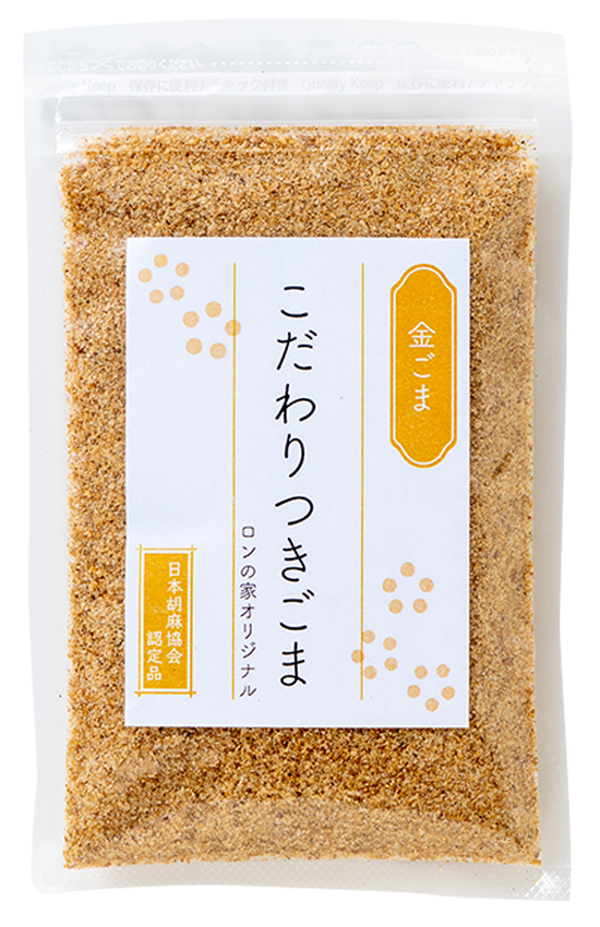 ロンの家ではおいしくて体に良い「すごい搗きごま」を製造販売しています。『京都・ごまの専門店ふかほり』が監修するごまは、ていねいに臼と杵で搗いた風味豊かな味わいです。